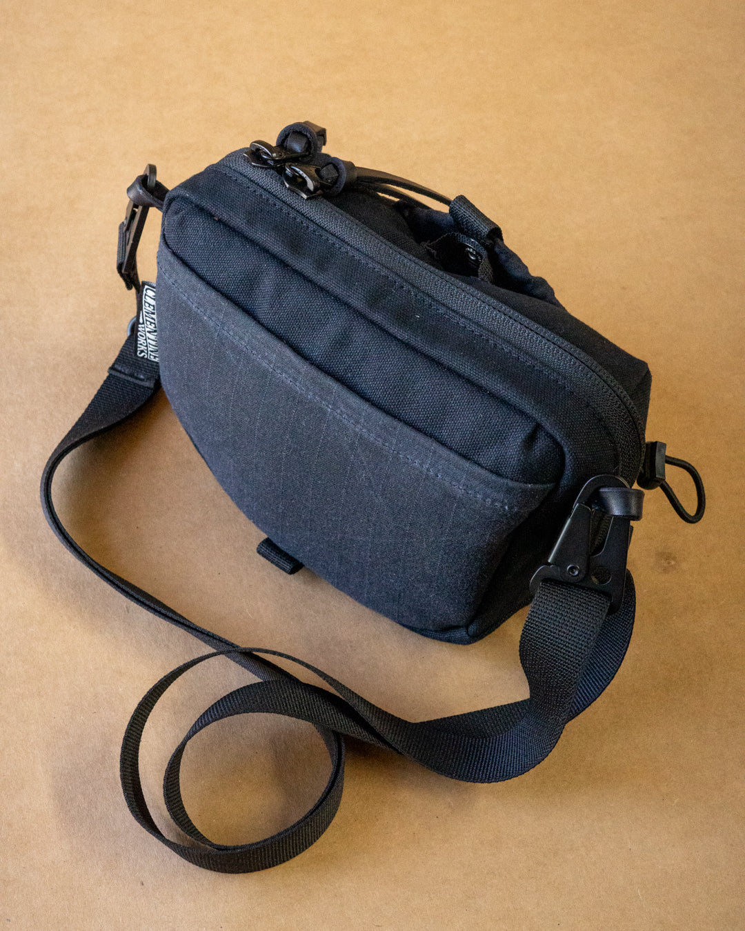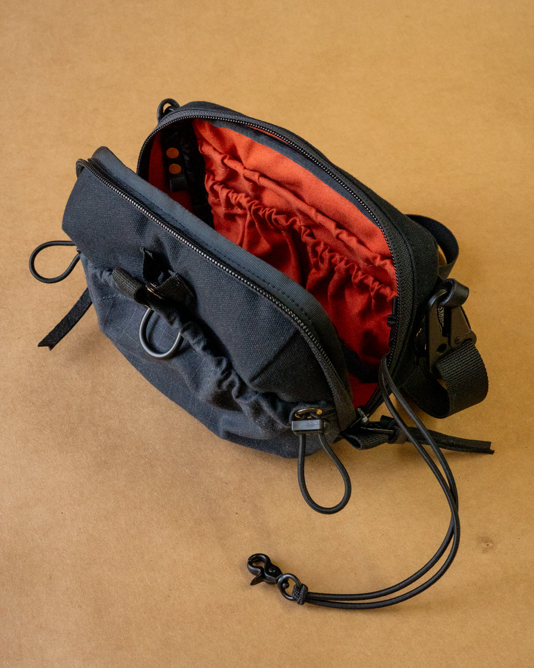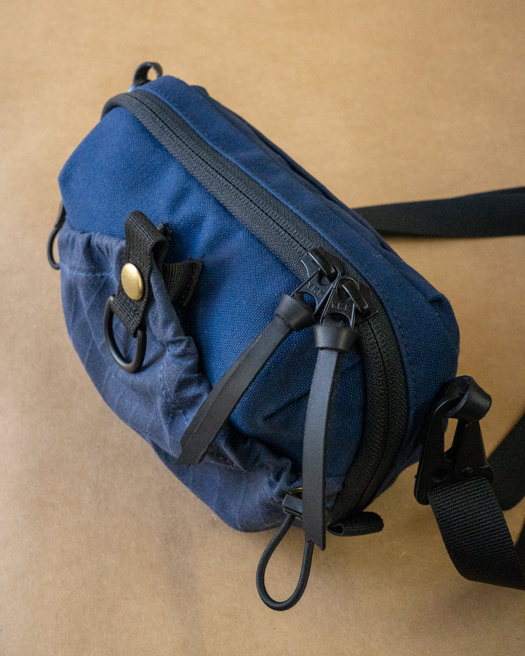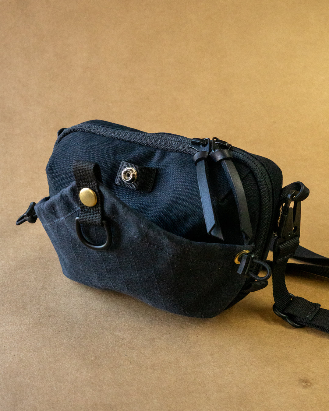 The Acorn Sling is a small crossbody bag that makes a great everyday companion. The bag zips open really wide, allowing you to get at your stuff with minimal rummaging. Inside there are three organizer pockets to keep your stuff securely where you want it. Clip your keys on to the lanyard inside, or attach them to the front D ring (also perfect for bag charms). The front pocket is expandable, and is a great spot to stash your quick access items. The bag is fully structured with foam, which ensures the bag will keep its shape empty and full.